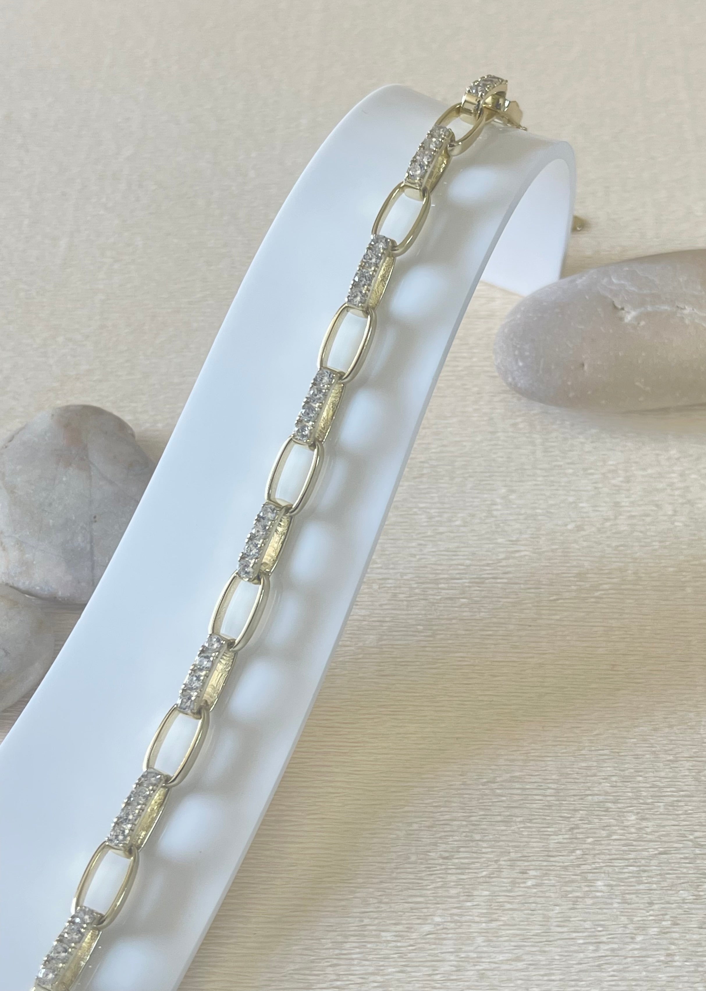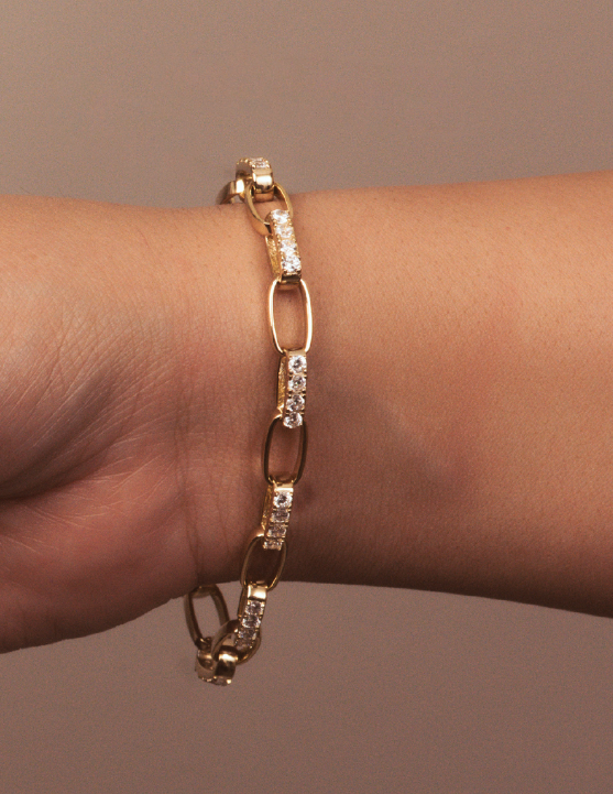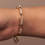 Add a touch of whimsy to your jewelry collection with the Verse chain bracelet. Made of 14K gold plated 925 sterling silver, this beautiful piece features sparkling white cubic zirconias. With its classic yet statement design, it's sure to be an absolute favorite!