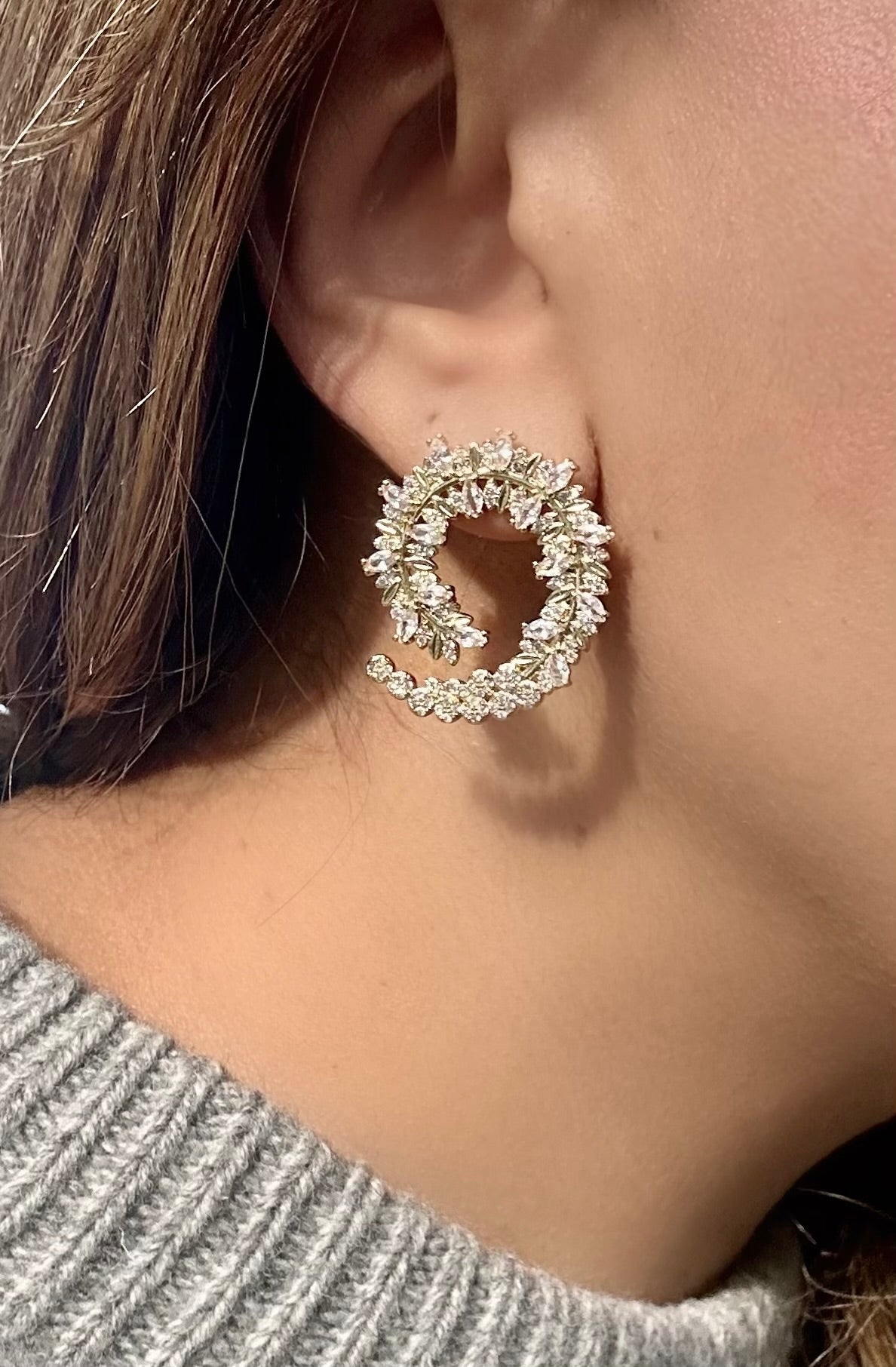 Elevate your style with the Spiralé earrings, featuring a striking spiral design crafted from 14K gold-plated brass. Adorned with dazzling cubic zirconia, these earrings bring bold elegance and captivating sparkle to any outfit. Perfect for making a memorable impression with an effortless touch of luxury.