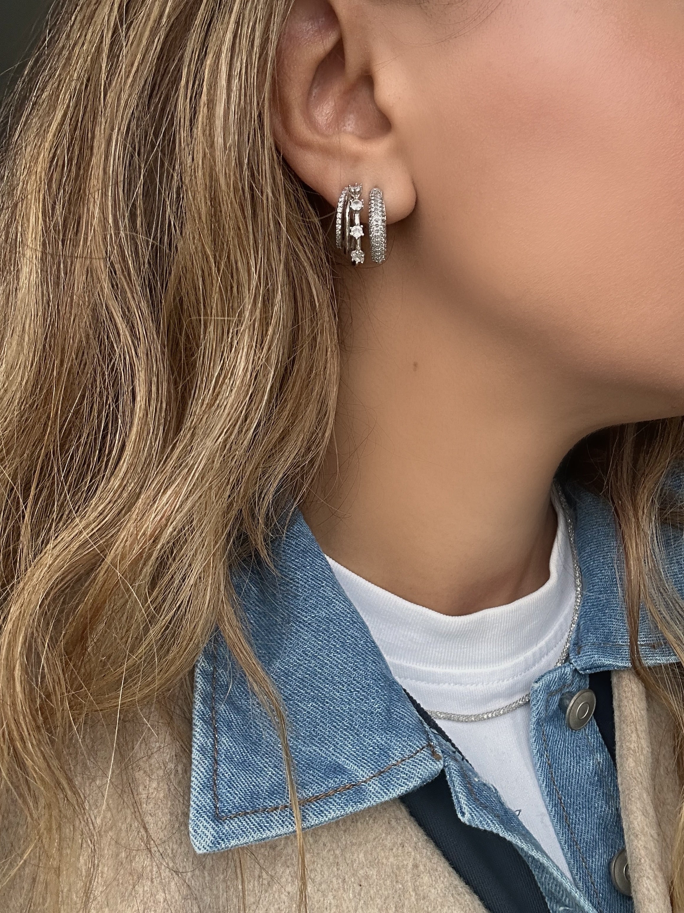 Elevate your style with our Sun-kissed hoops - made of 18K goldplated recycled 925 sterling silver adorned with sparkling cubic zirconia. Classic and unique, these hoops offer an extra touch with 3 layers of stacking and can be worn in two different ways. A must-have for your jewelry collection!