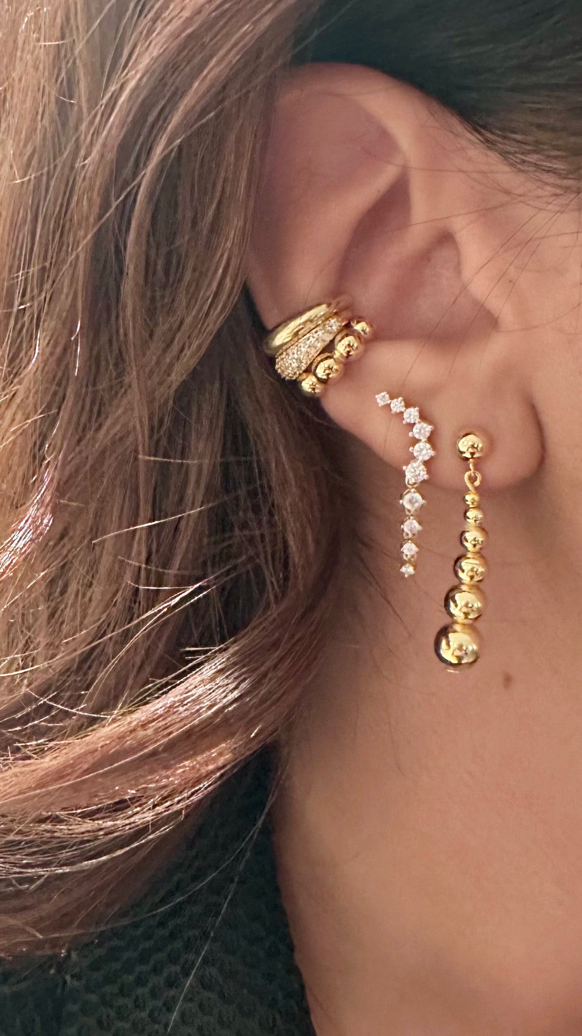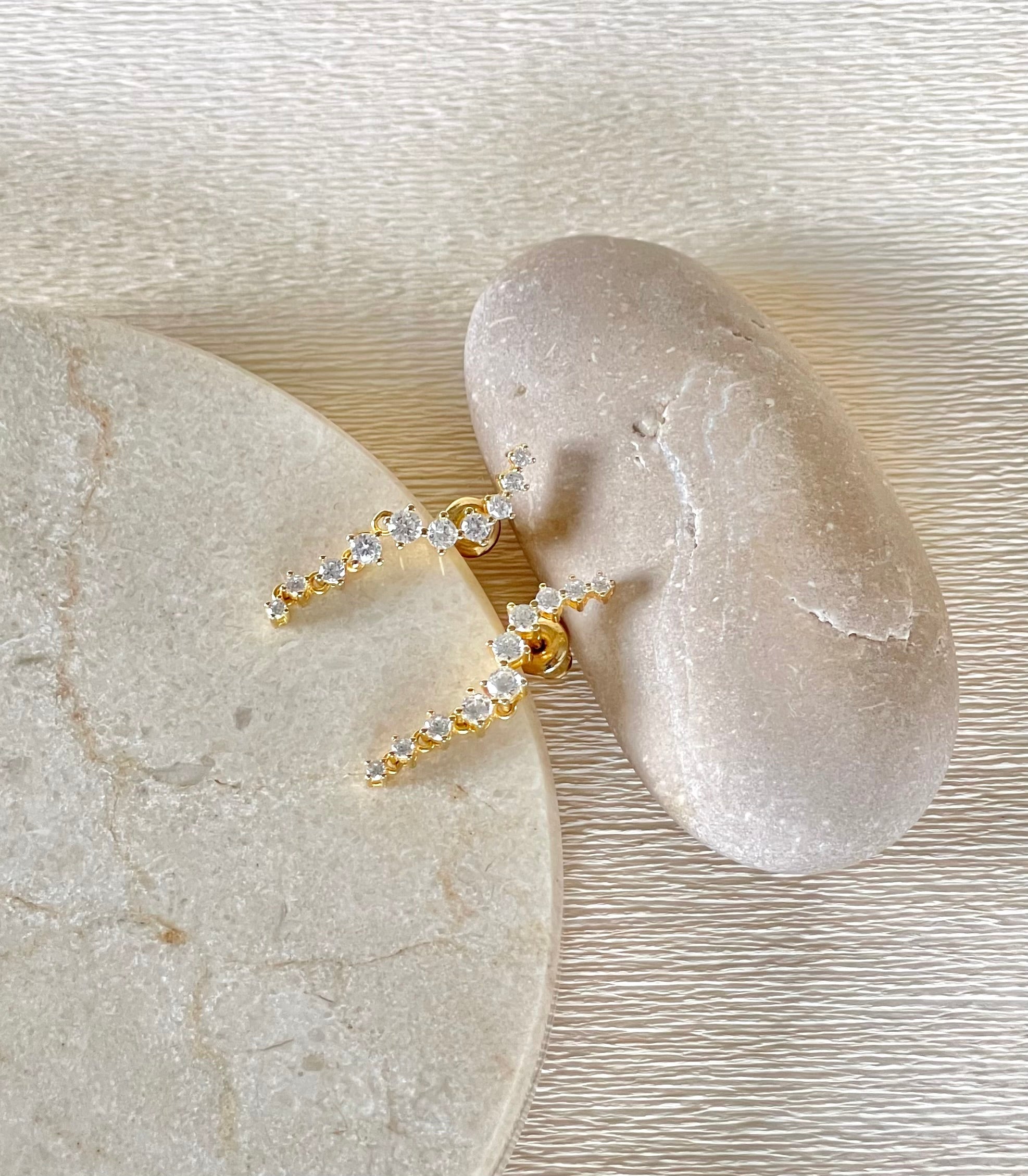 Indulge in sophistication with our Tassel drop earrings. Handcrafted with 925 sterling silver and 14K gold plating, these earrings are truly one-of-a-kind. Adorned with shimmering white cubic zirconia, add a touch of elegance and luxury to any outfit. Elevate your style and embrace your inner artistry with these beautiful and unique earrings.