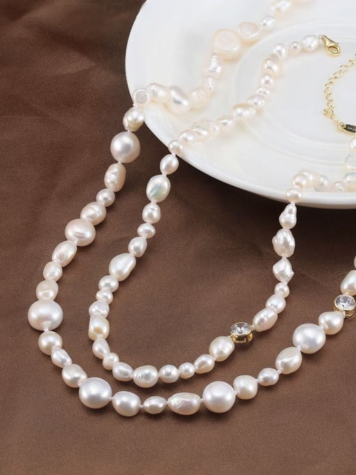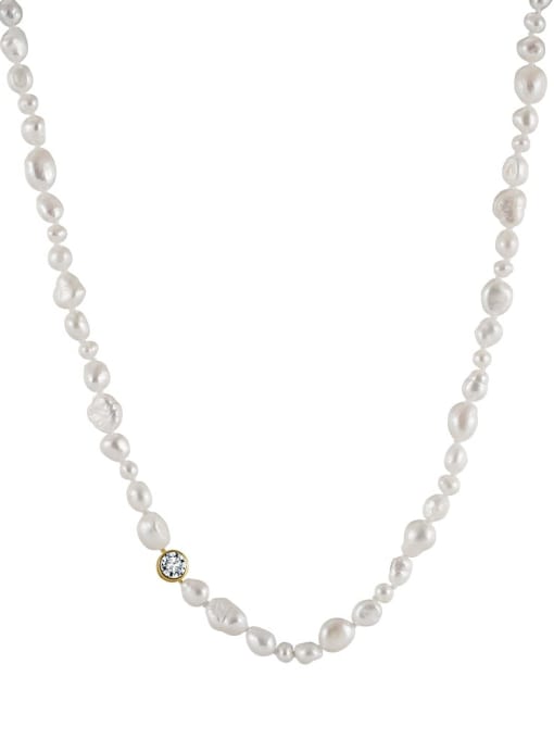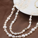 Transform your accessory game with the Aria pearl necklace. A boundary-breaking design that adapts to your style. Featuring lustrous freshwater pearls set in 14K gold-plated sterling silver, this statement piece offers endless styling possibilities: drape it long for understated elegance, wear it close as a chic choker, or wrap it as a bold bracelet. The brilliant white cubic zirconia sparkles with every movement, ensuring you'll turn heads no matter how you wear it. Perfect for those seeking a truly distinctive piece that works as hard as you do.