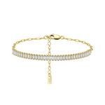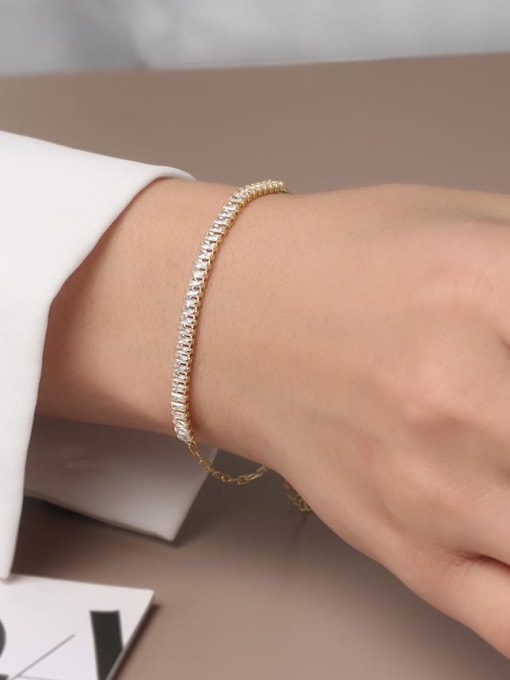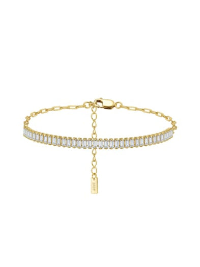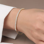 Find elegance and sparkle with our Baguette Tennis Bracelet. Made with 18K goldplated 925 sterling silver and adorned with white cubic zirconia, this timeless piece will add a wow factor to any outfit. Subtle enough to be worn alone, but bold enough to make a statement. Get yours today!