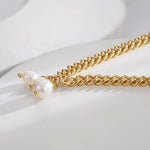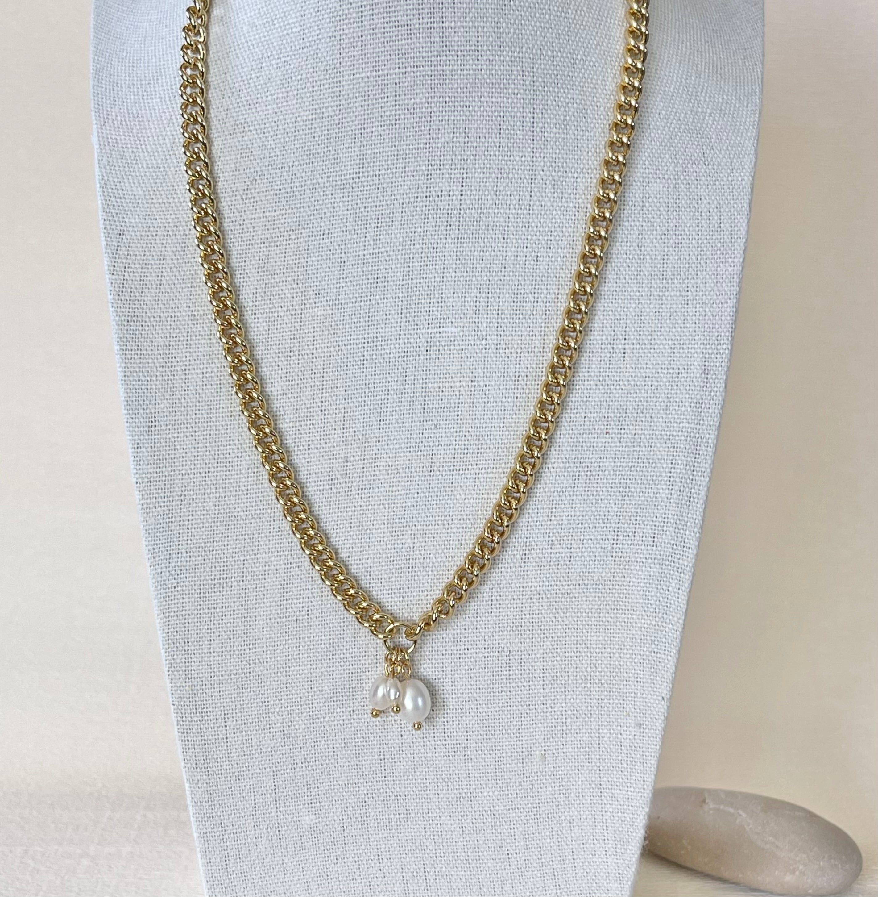 Spice up any outfit with the Overture necklace! This chic and unique piece is gold plated with white pearls, adding a touch of elegance to any look. Say goodbye to boring accessories and hello to statement-making style!