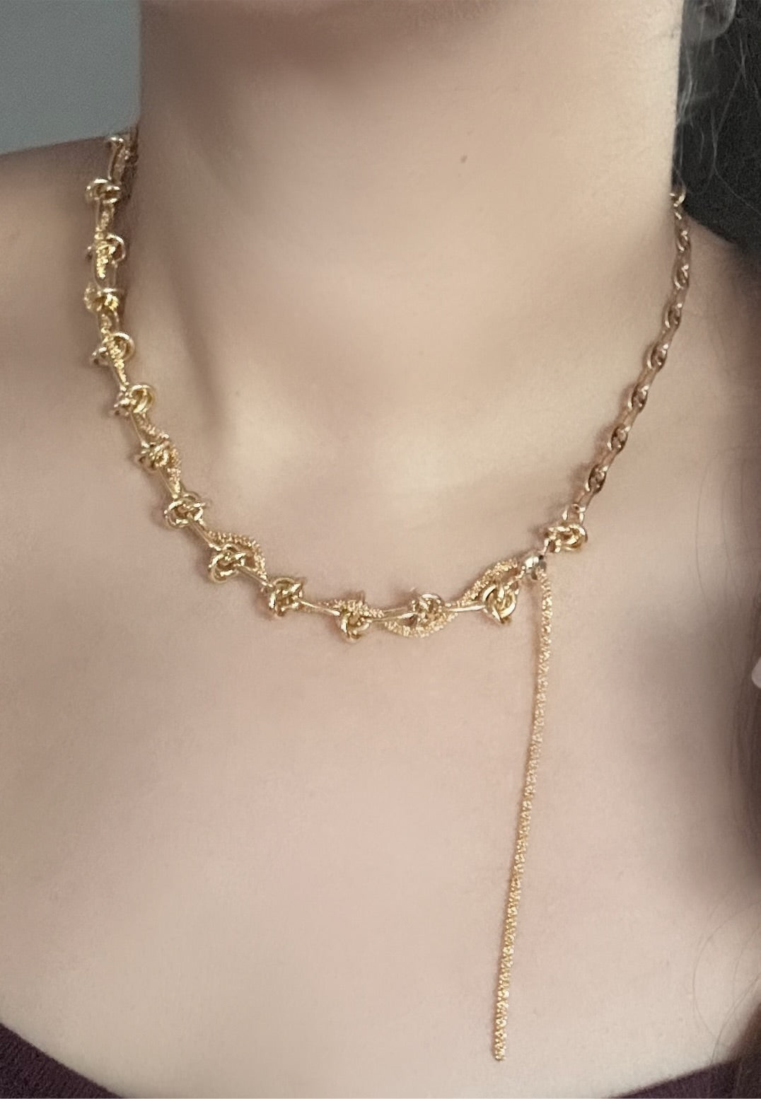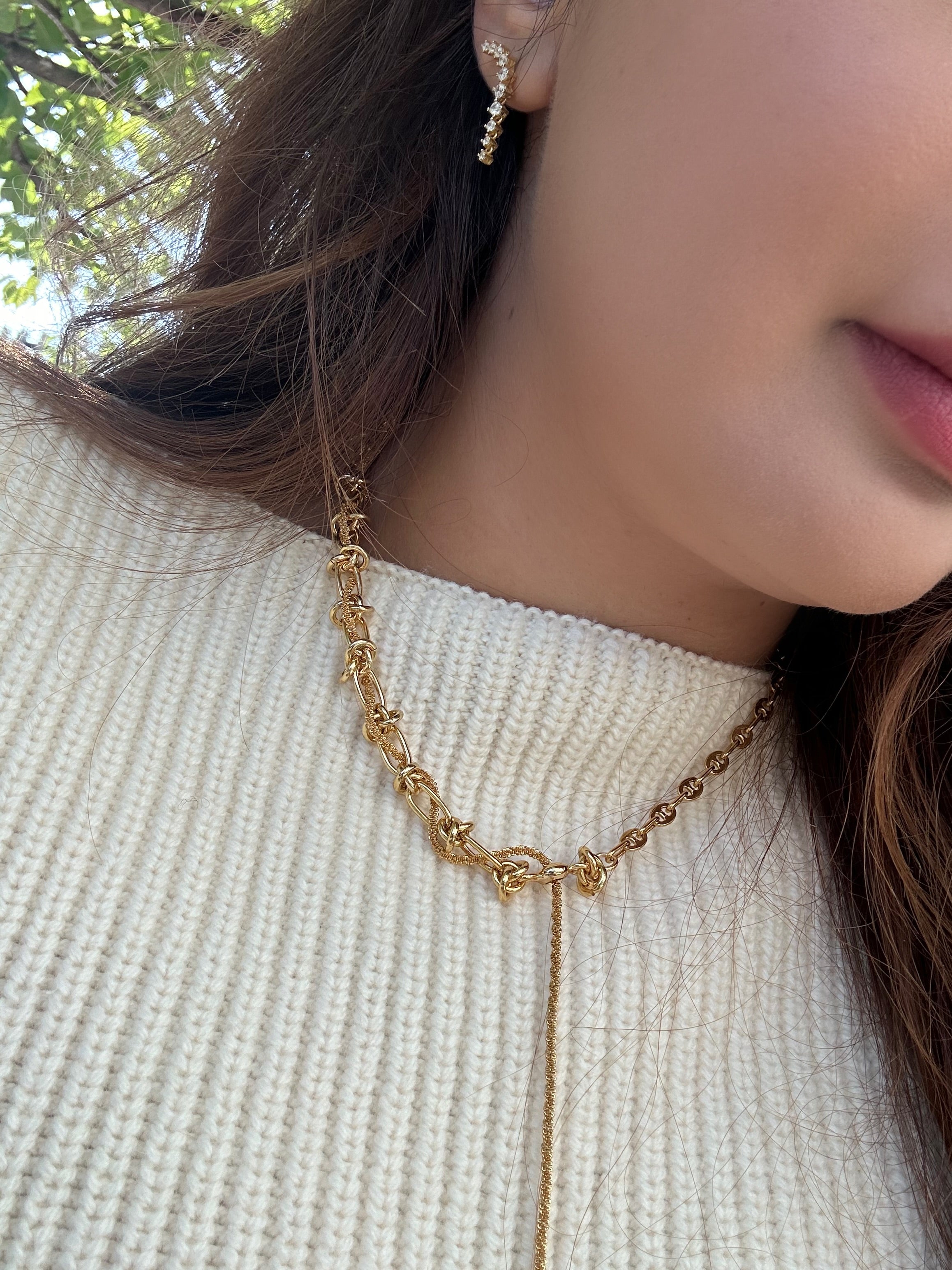 Add the perfect touch to your look with the Luna Knot Necklace. This demure necklace adds a statement to your fall outfits.