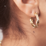 Add a touch of playful glamour to any outfit with our Staccato hoops! These chic and unique gold-plated hoops are accented with dazzling white cubic zirconia, perfect for spicing up any occasion.